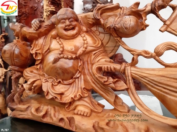 3. Phật Di Lặc ngồi đào tay cầm gậy bát vàng và con dơi mang ý nghĩa Phúc - Tài lộc...